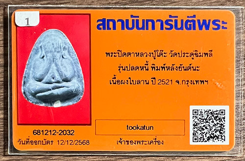 ปิดตาปลดหนี้หลังยันต์นะ ปี21 เนื้อใบลาน สภาพสวย นิ้วมือติดชัด ยันต์หลังติดชัด พร้อมบัตรรับรองพระแท้