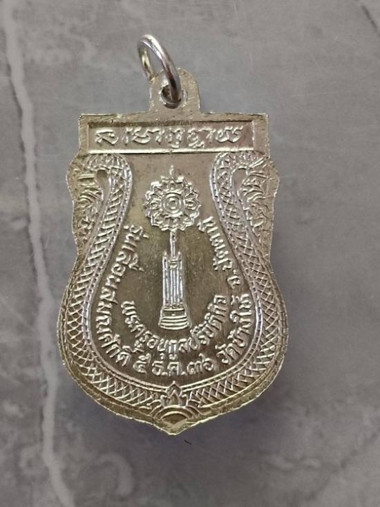 เหรียญเลื่อนสมณศักดิ์ หลังพัดยศ ปี2536 บล๊อกทองคำ เนื้ออัลปาก้าชุบนิเกิล สวยมาก