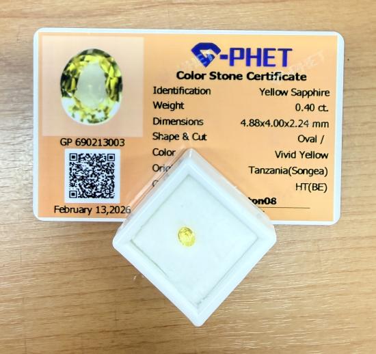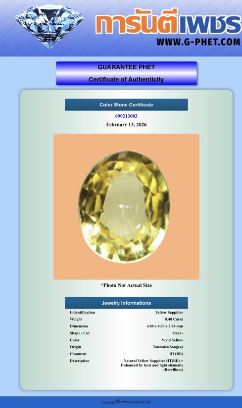 สีเหลืองสดใส Yellow Sapphire (พร้อมบัตรรับรองจากจีเพชร)
