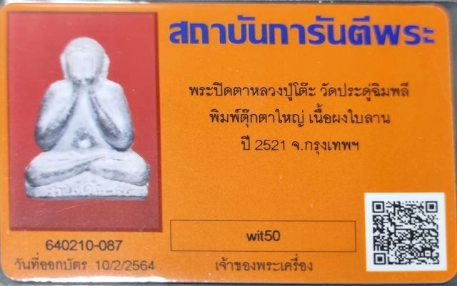 พระปิดตาพิมพ์ตุ๊กตาใหญ่เนื้อใบลานพร้อมบัตรสวยๆครับ