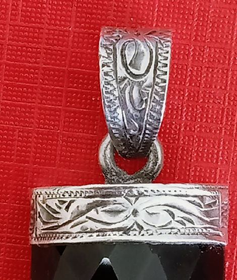 จี้นิลเมืองกาญจน์แท้ เลี่ยมเงินแท้ 92.5% ตอกลายงานฝีมือเก่าล้วน ๆ สวยมาก ขนาดเขื่องสูงเกือบ 1.5 นิ้วรวมห่วง กว้างครึ่งนิ้ว สภาพสวยตามรูป ส่งฟรีทั่วไทย รับประกันตามกฎครับ