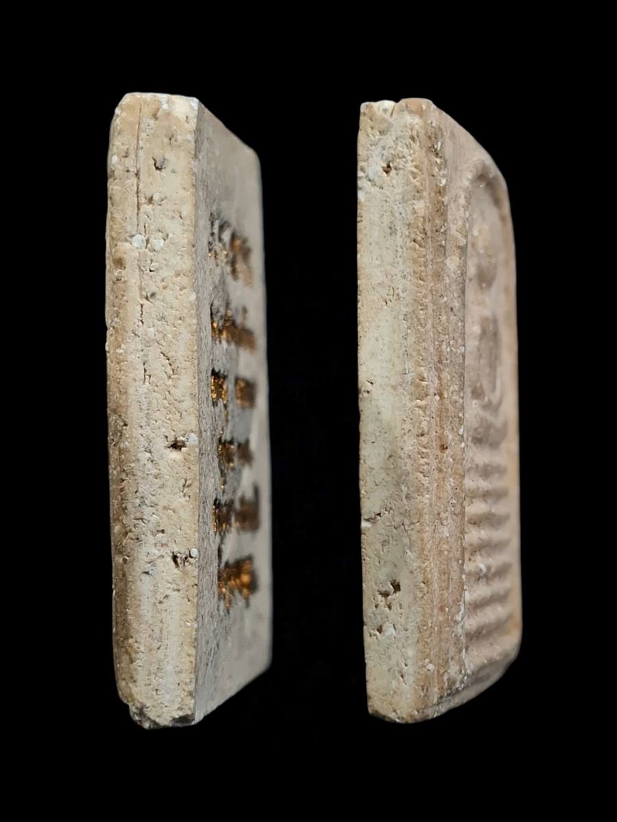 สมเด็จพิม์เจ็ดชั้นหลังหนังสือ วัดโพธิ์เกรียบ จ.อ่างทอง พ.ศ.2495 ( ผสมผงเก่าวัดเกศไชโย ) ขนาด 2.5 x 3.5 ซม. |