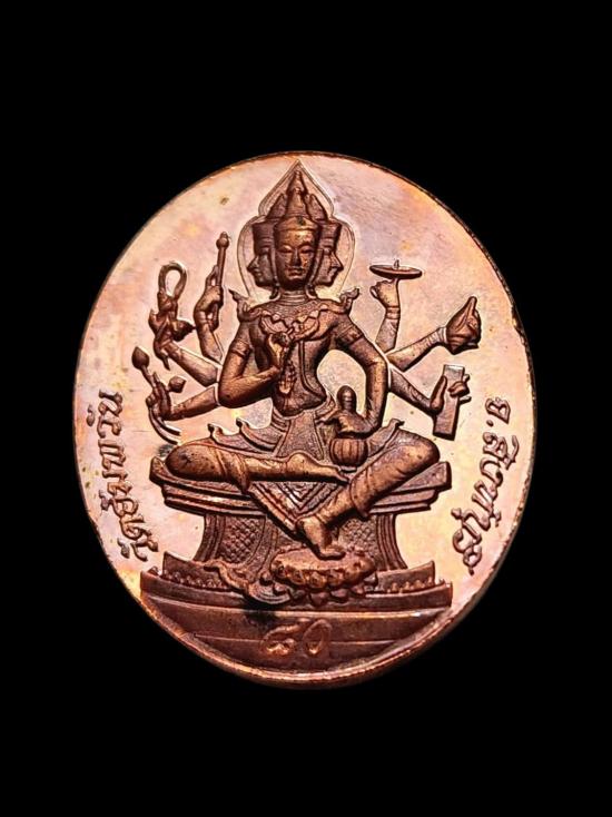 หลวงพ่อจรัญ วัดอัมพวัน จังหวัดสิงห์บุรี เหรียญ 80 ปีหลังพระพรหมเนื้อทองแดง พิมพ์เล็ก