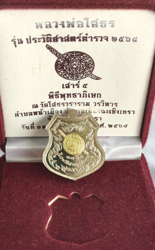 เหรียญหลวงพ่อโสธร รุ่นประวัติศาสตร์ตำรวจ 2568 พิธีเสาร์๕ วัดโสธรวราราม จ.ฉะเชิงเทรา พิมพ์เหรียญอาร์ม เนื้ออัลปาก้า หน้ากากทองทิพย์หน้า-หลัง หมายเลข ๘๘ พร้อมกล่องกำมะหยี่ เลขรวยรวย เหรียญสวยมากครับ