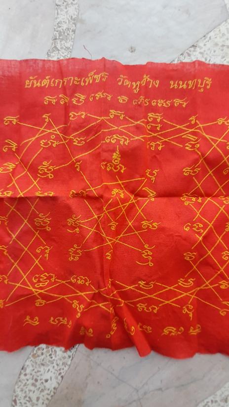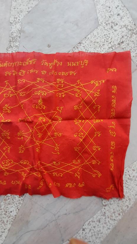 วัดใจเคาะเดียว.......100......ผ้ายันต์ เกราะเพชร หลวงพ่อตี๋ วัดหูช้าง ขนาดประมาณ 9 x 12 นิ้ว |