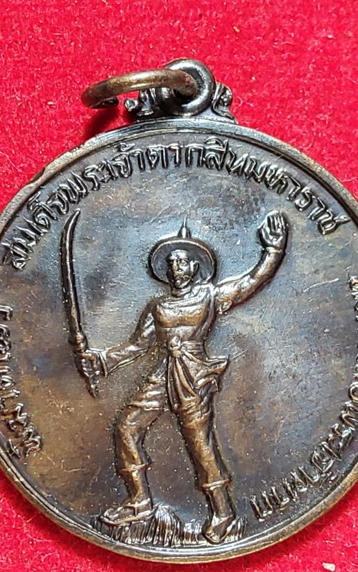 เหรียญพิฆาตไพรี สมเด็จพระเจ้าตากสินมหาราช ทหารเสือพระเจ้าตาก ค่ายวชิรปราการ สันติสุข เนื้อทองแดงรมดำ ปี 2528