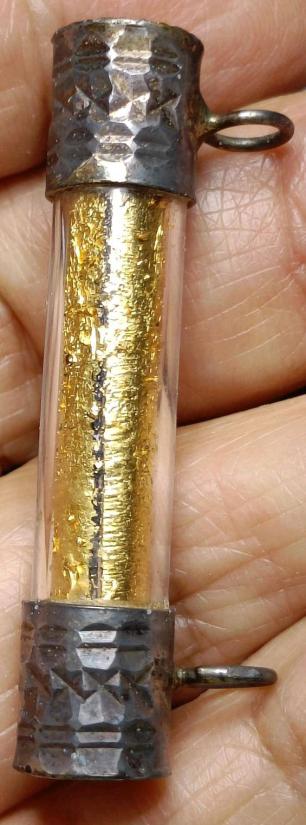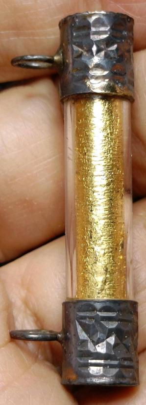 ตะกรุดปิดทอง แท้ไม่ทราบที่ ไส่กรอบเงินอย่างดี เบาๆครับ