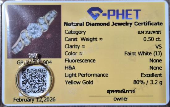Center Diamond(1) = 0.26 ct., VS, Faint White (IJ/น้ำ 95-94)