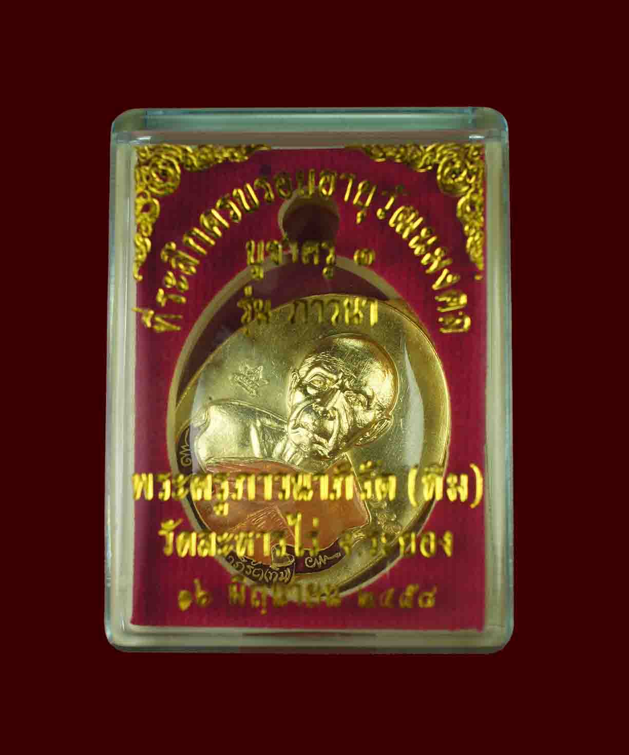 เหรียญห่วงเชื่อมภาวนา ปี 2558 หลวงปู่ทิมวัดละหารไร่ เนื้อ ทองแดง กะไหล่ทอง สีแดง จีวรเหลือง ตอกโค้ต ศาลา หมายเลข *1408* ยาสวย ไม่มีหลุด สร้างน้อย 3,999 เหรียญ พร้อมกล่องเดิมจากวัด ไม่ผ่านการใช้ รับประ
