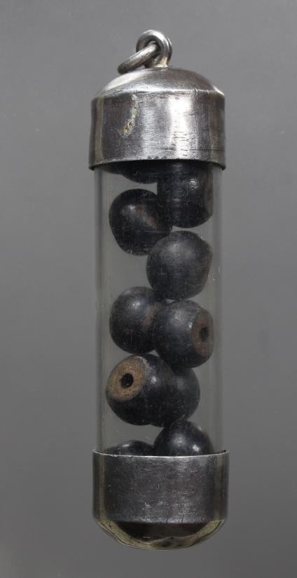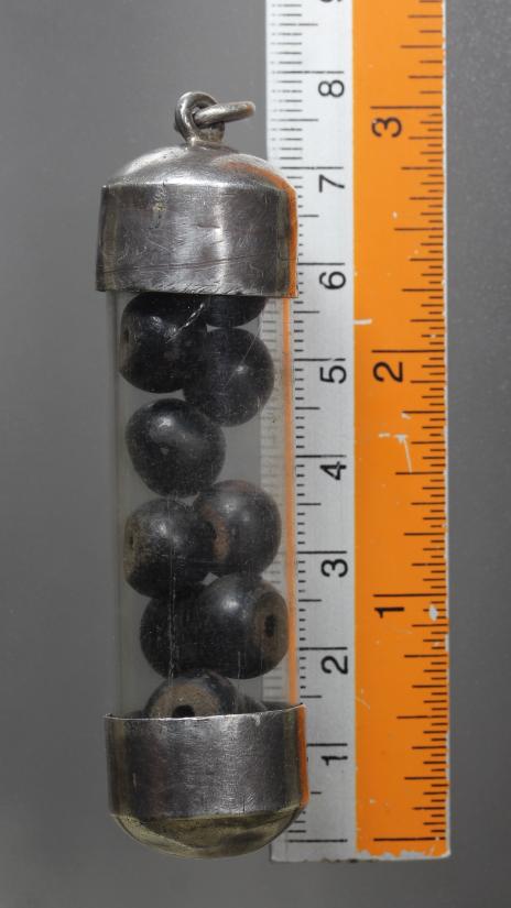 ลูกประคำ ไม่ทราบที่ 10 เม็ด อยู่ในหลอดใส่ตระกรุด เงินปิดหัวท้าย