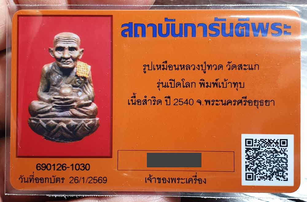 6.รูปเหมือนหลวงปู่ทวด วัดสะแก รุ่นเปิดโลก พิมพ์เบ้าทุบ เนื้อสำริด ปี 40 จ.อยุธยา (เกศาหลวงปู่ดู่เยอะมากครับ) พร้อมบัตร เคาะเดียวแดง 1,800