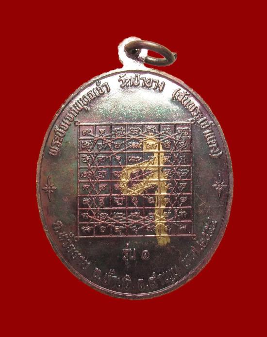 " ซึ่งพระปัจเจกพุทธเจ้าในเหรียญ ถอดแบบมาจากพระพุทธรูปเก่าแก่ประจำวัด มีอายุหลายร้อยปีหรืออาจถึงพันปี ช่วงเทศกาลจะมีชาวบ้านมากราบไหว้ขอพรเป็นประจำทุกปี " ( รายละเอียดจากคุณอัสดงครับ ) และ ด้านหลัง บรรจุยันต์เกราะเพชร คือ ได้ทั้งโชคลาภ และป้องกันอันตรายทุกอย่าง ครูบากฤษดา ท่านบอกว่าเหรียญนี้ " หนักในทางโชคลาภ เมตตามหานิยม "