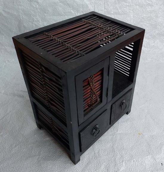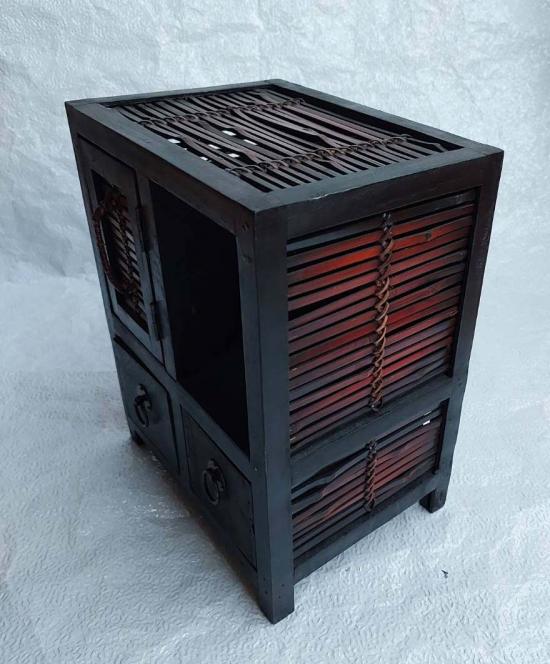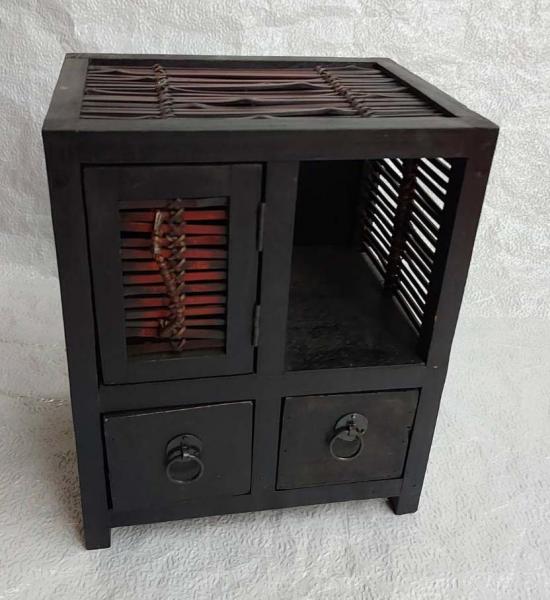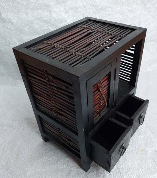 ***วัดใจ***กล่องไม้วินเทจญี่ปุ่น งานฝีมือเก่า 2 ลิ้นชัก 1บานเปิด สไตล์ย้อนยุค ผสมงานไม้ไผ่