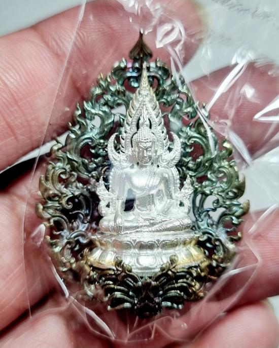 สมเด็จองค์ปฐม ธรรมบันดาล หลวงพ่อเล็ก วัดท่าขนุน กาญจนบุรี เนื้อบรอนซ์ผิวรุ้งองค์ชุบเงิน หมายเลข50 พร้อมกล่อง