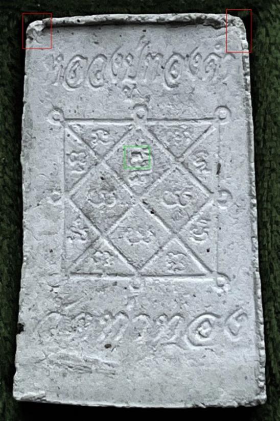 -เหรียญหล่อ จมูกยุบมีตำหนิทั้งบนล่าง + หล่อมีรูตำหนิ ด้านบนมือขวา