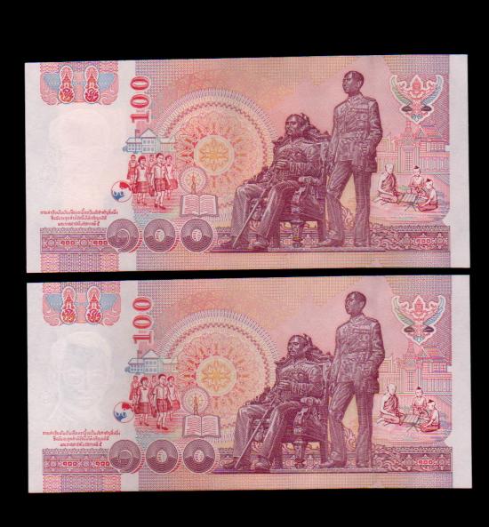 ## ธนบัตร 100 บาท ## โรงเรียนเลิก ## แบบมีฟอย ## ตัวติด ผลิตน้อย ## เรียงเลข 2 ฉบับ ## UNC