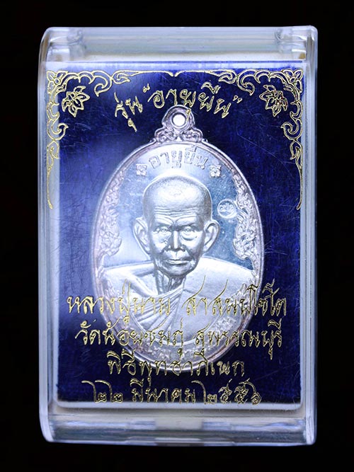 หลวงปู่ท่านมีดำริ ให้จัดสร้าง เหรียญรุ่น "อายุยืน" ท่านตั้งใจ ให้เหรียญรุ่นนี้ สามารถ ให้ลูกศิษย์ของท่าน ได้มีไว้ใช้กันทั่วถึง เท่าเทียมและเสมอภาคกันหมด หลังจากรุ่นก่อนๆ มีลูกศิษย์ หลายๆคน ไปบอกท่านว่า "ผมมาไม่ทัน อยากได้เหรียญเงินมาก แต่หมดก่อน"และนี่คือที่มาของเหรียญ "อายุยืน"สุดยอดวัตถุมงคล แห่งปี2556 ของหลวงปู่นาม เหรียญ อายุยืน หลวงปู่ท่านมีดำริให้จัดสร้าง เหรียญอายุยืน โดยจะนำเงินรายได้ ไปสร้างศาลาปฎิบัติธรรม สูง2ชั้น ภายในวัดน้อยชมภู่และท่านได้ให้โจทย์มาว่า ฉันต้องการให้เหรียญรุ่นนี้ ลูกศิษย์ได้มีไว้ใช้กันทุกคนและทั่วถึงอีกทั้งเสมอภาคกันหมด ดังนั้นเพื่อสนองตอบกับความประสงค์ของท่าน ทางวัดจึงจะเปิดให้จองบูชา และจะเริ่มให้จอง ตั้งแต่วันที่1มกราคมพ.ศ.2556จนถึง28ก.พ.56 โดยทางวัดจะสั่ง ให้โรงงานทำ ก็ต่อเมื่อ ได้รับชำระเงินแล้ว และต้องก่อน28ก.พ.56 ถ้าไม่ชำระเงินก่อน28ก.พ.56 ยอดสั่งจองของท่านจะถูกยกเลิก ดังนั้น หมายความว่า จะสั่งโรงผลิต เท่าจำนวน ที่ชำระแล้ว เท่านั้น สรุปก็คือ ถ้าจองแล้วกรุณาชำระเงินทันที รับวัตถุมงคลได้ ตั้งแต่ 1 เม.ย.56 เป็นต้นไป สำหรับเหรียญที่จะสร้างมีเนื้อดังนี้