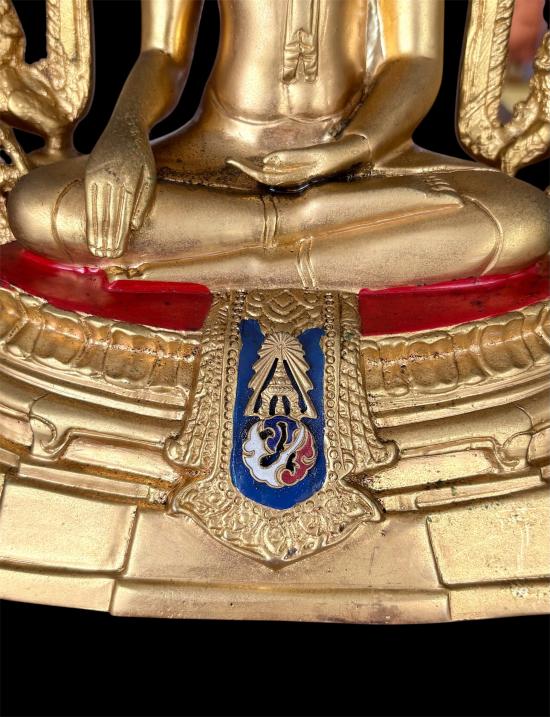 เคาะเดียวครับ...พระบูชาพระพุทธชินราช ภปร.ปิดทอง 2 ถอด วัดพระศรีรัตนมหาธาตุวรวิหาร(วัดใหญ่) พิษณุโลก ตอกหมายเลขลำดับ 13 ทั้งองค์พระ และซุ้ม ตรงกันครับ เนื้อโลหะทองเหลืองปิดทอง สภาพสวยสมบูรณ์มาก หน้าตัก |