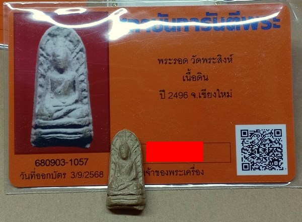 พระรอด วัดพระสิงห์ ปี 2496 เชียงใหม่ พร้อมบัตร