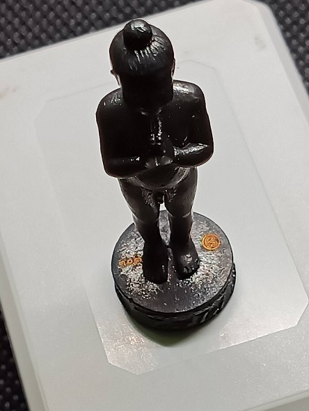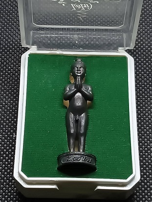 ไอ้ไข่ เด็กวัดเจดีย์ รุ่นมั่งมีศรีสุข วัดสระสี่มุม อ.สิชล จ.นครศรีธรรมราช ปี๒๕๕๙ องค์ยืนรมดำ ๔.๕ ซม. หมายเลข 303 เข้มขลัง พร้อมกล่องเดิม |