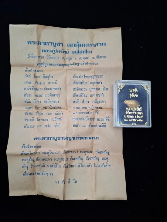นกคุ้ม หลวงพ่อทรัพย์ วัดตลุก จ.ชัยนาท ปี 20 กล่องเดิม พร้อมใบคาถา |