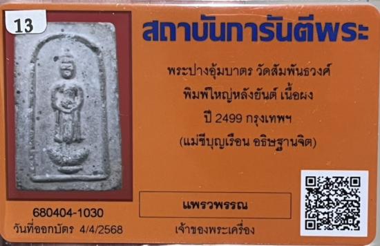 พพระมงคลมหาลาภพิมพ์ใหญ่ปางอุ้มบาตรวันพุธเนื้อผงปี2499.วัดสัมพันธ์วงศ์คุณแม่บุญเรือน