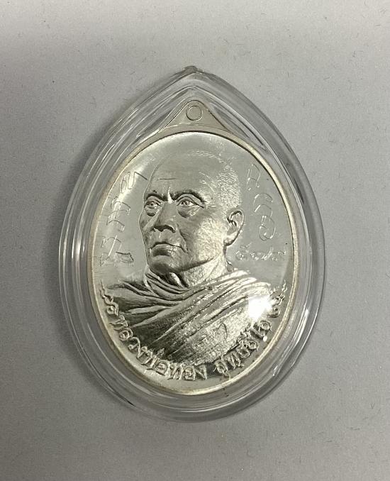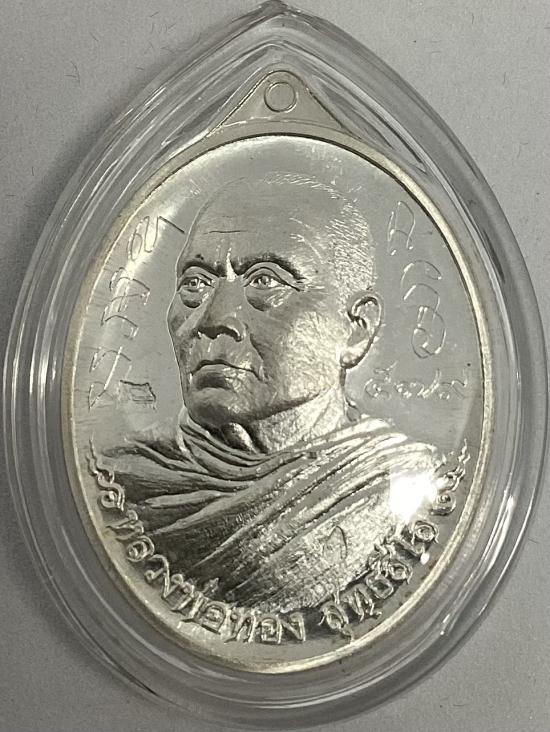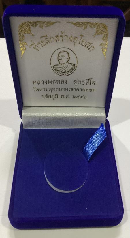 เหรียญหันข้าง รุ่นที่ระลึกสร้างอุโบสถ หลวงพ่อทอง สุทธสีโล วัดพระพุทธบาทเขายายหอม จ.ชัยภูมิ ปี2556 เนื้อเงิน หมายเลข 579 แยกจากชุดกรรมการพร้อมบัตรสภาพสวย+กล่องครับ