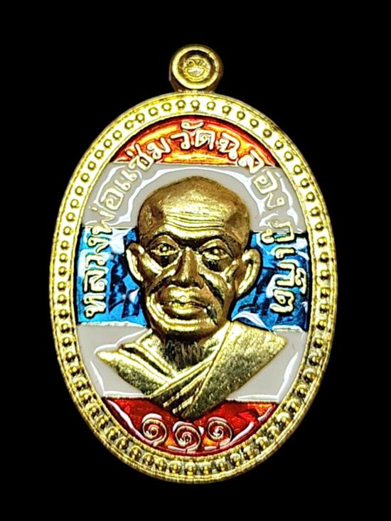A7733.เหรียญหลวงพ่อเเช่ม วัดฉลอง ภูเก็ต รุ่น 111 ปี กะไหล่ทองลงยาลายธงชาติ สภาพสวยกริ๊บ เคาะเดียวเเดง |