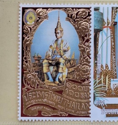 แสตมป์ชุดฉลองสิริราชสมบัติครบ๕๐ปี แสตมป์ทอง1ดวง ตามรูปครบชุด