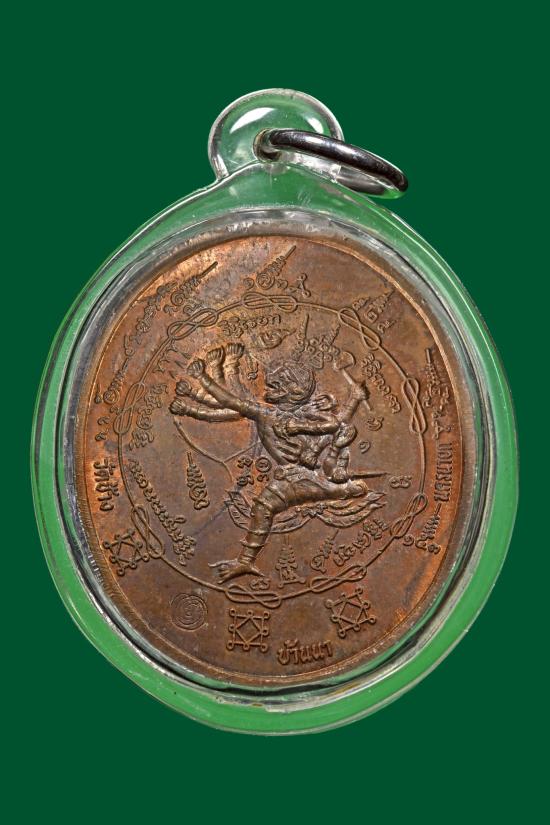 เหรียญนารายณ์หลังหนุมาน 10 กร รุ่นแรก เนื้อทองแดง พระอาจารย์ต๊ะ วัดช้าง อ.บ้านนา จ.นครนายก ปี39