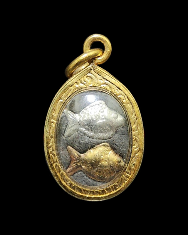 ล็อกเก๊ตหลวงพ่อจ้อย หลังอุดผงพุทธคุณปลาตะเพียนเงินทอง พร้อมเลี่ยมเดิมจากวัดศรีอุทุมพร |