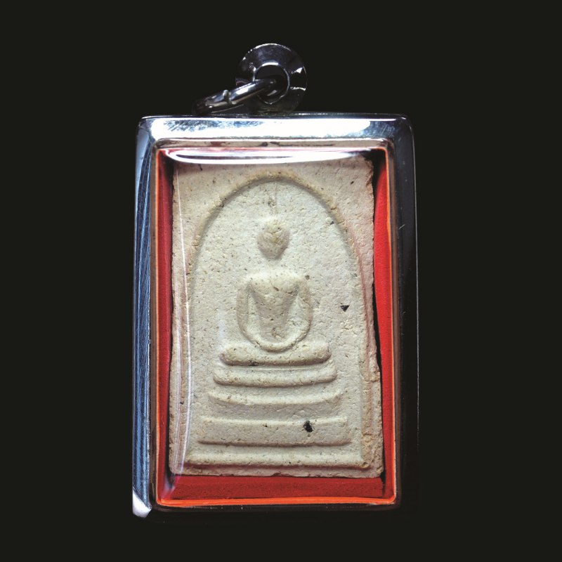 วัดใจ พระสมเด็จ หลังสมเด็จโต พิธีจตุรพิธพรชัย ปี 2518 พระมีลอยกดตรงขอบข้าง พร้อมกรอบสแตนเลส |