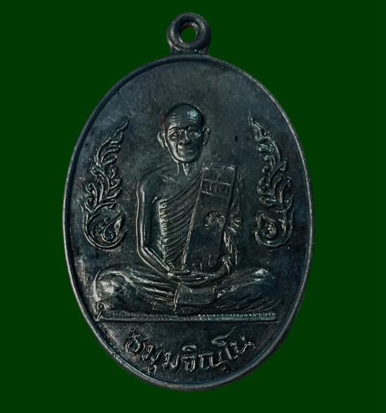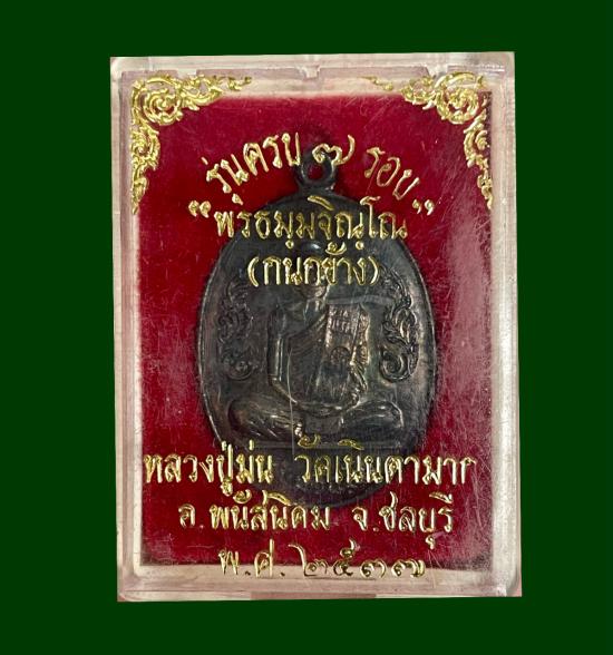 เหรียญกนกข้าง เนื้อเงิน ที่ระลึกอายุครบ ๗ รอบ หลวงปู่ม่น ธัมมจิณโณ วัดเนินตามาก พศ.๒๕๓๗ กล่องเดิม หมายเลข 1504 |