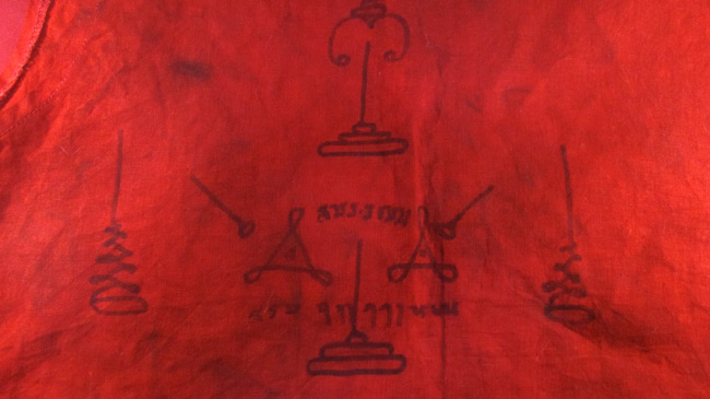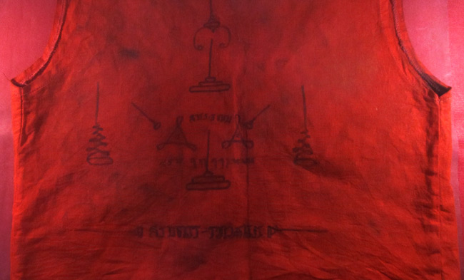 เสื้อยันต์ ไม่ทราบที่ ด้านหลังจารยันต์ด้วยมือ ครับ (พระบ้าน ครับ) |