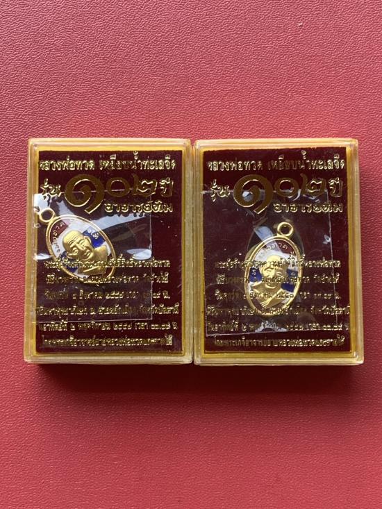 เคาะเดียวแดง เม็ดแตง 2องค์หลวงปู่ทวด รุ่น102ปีอาจารย์ทิม เนื้อชุบทองลงยาสีธงชาติ |
