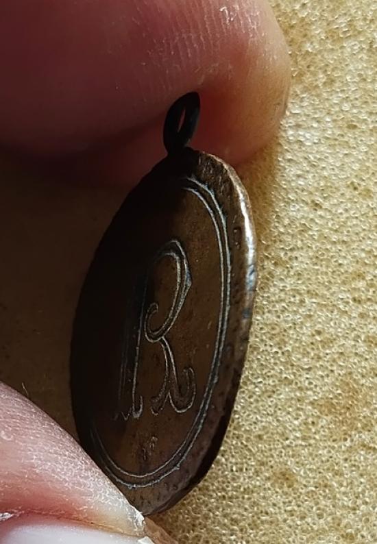 กลางเหรียญ เป็นตัว R พิมพ์ใหญ่ (ในล่องลงยา)