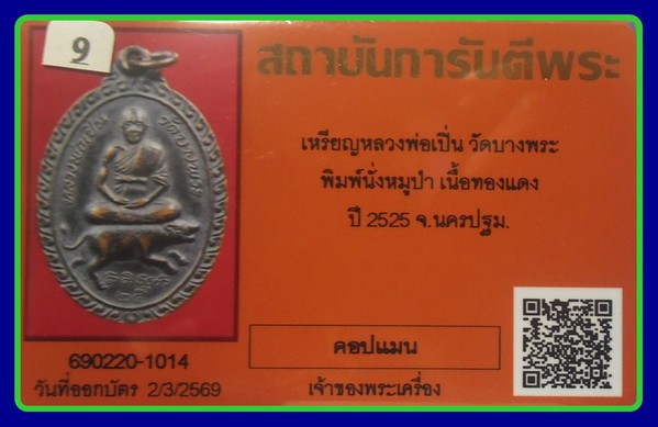 บัตรการันตี-700-เหรียญนั่งหมูป่า หลวงพ่อเปิ่น วัดบางพระ เนื้อทองแดง พศ.2525