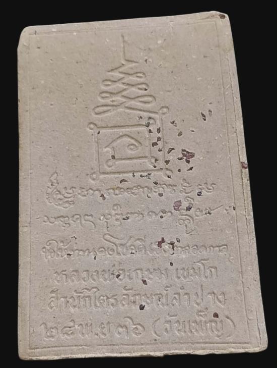 สร้างเพียง 2537 องค์ครับ พระผง ข้าวก้นบาตร รูปเหมือนยืน หลวงพ่อเกษม เขมโก รุ่นวันเพ็ญเดือนสิบสอง ปี2536 ฝังตะกรุดเงิน มีเกศา ด้านหลังโรยพลอยเสก ในพิมพ์ พระสวยมากๆมีกล่องเดิมครับ |