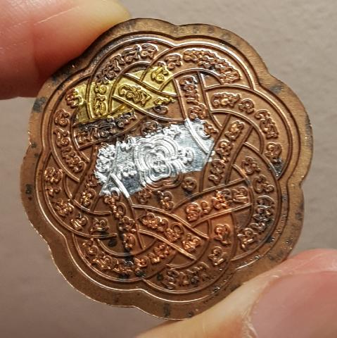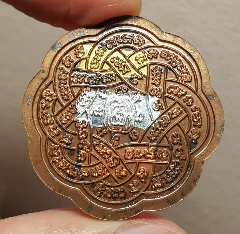 เหรียญพญาสมิงยางตัน หลวงพ่อไฉน วัดสังฆปรีดี เนื้อนวะ ด้านหน้า เสือหน้ากากเงิน+ นวะ ด้านหลังตะกรุดสามกษัตริย์ ตอกโค๊ต+หมายเลข พร้อมกล่องเดิม