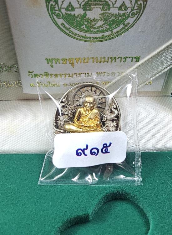 เหรียญหลวงปู่ทวดรุ่น "อภิเมตตา มหาโพธิสัตว์" พิมพ์จิ๋ว เจริญลาภ เจริญยศ เนื้ออัลปาก้า องค์กะไหล่ทองคำ หมายเลข ๙๑๕ ซีลเดิมๆ พร้อมกล่องเดิม