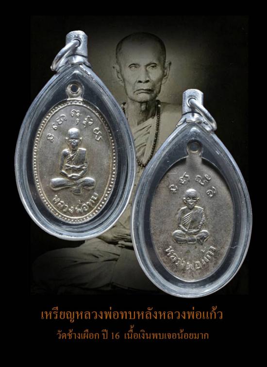 เหรียญหลวงพ่อทบหลังหลวงพ่อแก้ว เนื้อเงินปี 16 วัดช้างเผือก พร้อมเลี่ยม กรอบ เงิน%ต่ำ เจ้าของเดิมทำมา 600 พร้อมทำกันน้ำ รับประกันพระแท้ผิวเดิมพร้อมบัตรรับรอง 1 ใบ