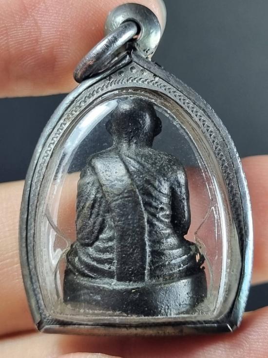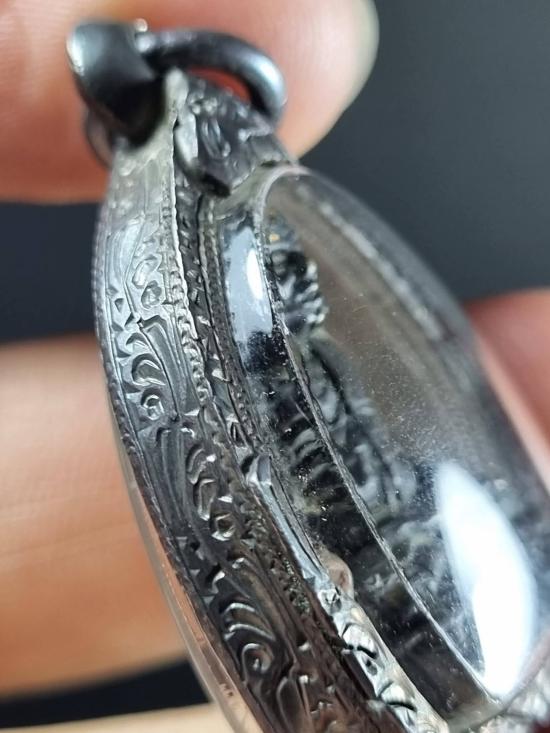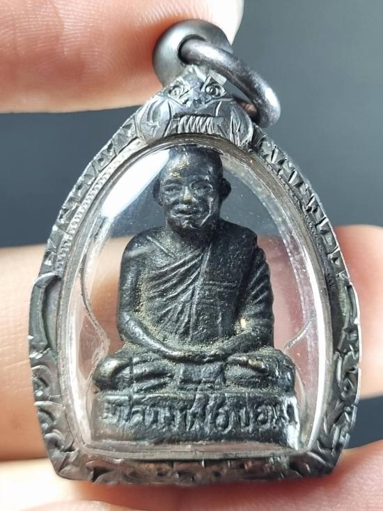 เคาะเดียว....เลี่ยมกรอปเงิน รูปหล่อโบราณ พิมพ์แป๊ะยิ้ม หลวงพ่อขอม วัดไผ่โรงวัว ปี2500