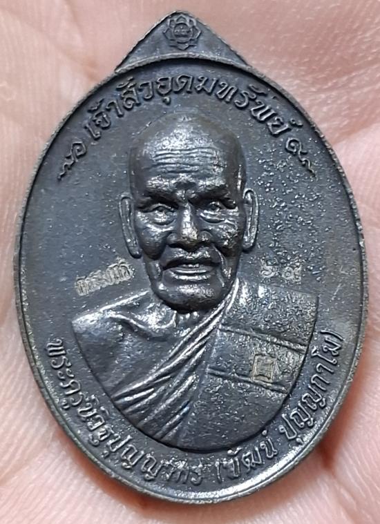 เหรียญหล่อ รุ่น เจ้าสัวอุดมทรัพย์ พระครูนิวิฐปุญญากร(พัฒน์ ปุญฺญกาโม) วัดห้วยด้วน จ.นครสวรรค์ เนื้อเหล็กน้ำพี้