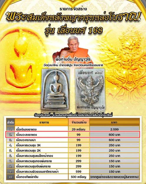 +!!เคาะเดียวllดง ตลอดสาย!!+ พระสมเด็จหลังพญาครุฑหล่อโบราณ หลวงปู่อิ่ม วัดทุ่งนาใหม่ จ.นครศรีธรรมราช รุ่นเลื่อนยส 168 ปี66 (เนื้อนวะลงยาแดง ราคาจอง 600บ. เลขสวย 27) พร้อมกล่องครับ