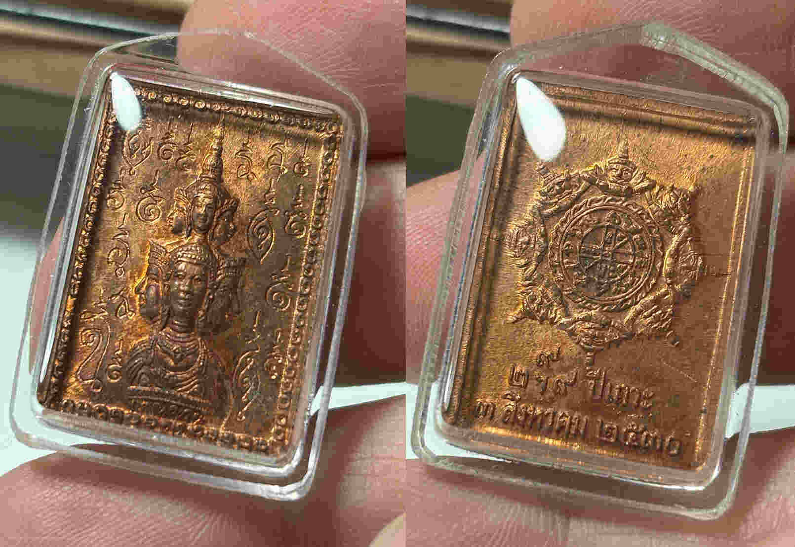 DeDee แบ่งเคาะแรก เหรียญแสตมป์ ยันต์ข้าง เศียรหลักเมือง รุ่นแรก ปี ๒๕๓๐ เนื้อทองแดง ผิวไฟเดิม DeDee
