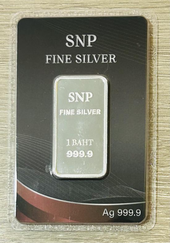 เงินแท่ง 999.9% ร้าน SNP ซิงแสงนภา ร้านดังยอดฮิต ขนาด 1 บาท พร้อมแพ็คเกจ และบัตรรับประกันจากร้านทองตัวแทนจำหน่าย