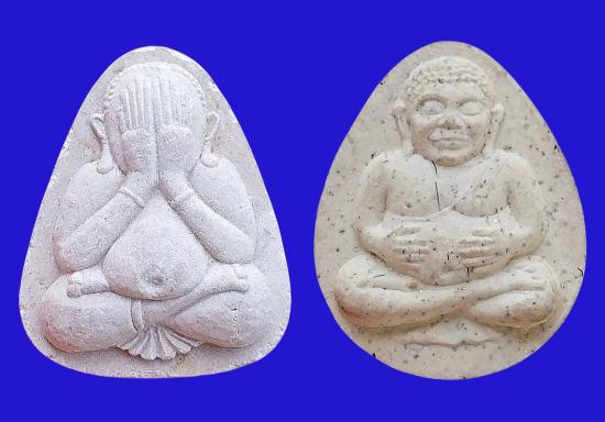 พระปิดตาเนื้อผง ปี34 + พระผงพระสังกัจจายน์ ปี37 หลวงพ่อสร้อย วัดเลียบราษฎร์บำรุง กทม. |