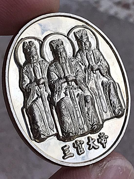 *ที่ฆ้อนมีอีกเยอะครับ เคาะเดียว*เหรียญซำกัวไต่ตี่ (สามเทพเจ้าผู้เป็นใหญ่) หลังประทับด้วยยันต์ เทียนกัวสื่อหก(อาแป๊ะโรงสีใช้เป็นยันต์ประจำตัว) ดีทางขอพรให้สำเร็จกันเรื่องร้าย ๆ เรียกโชคลาภ