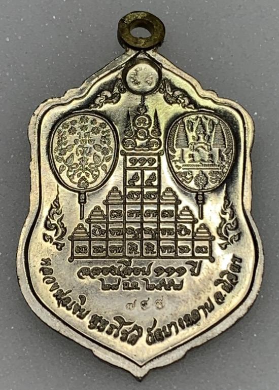 ลักษณะ: เป็นเหรียญทรงเสมา ด้านหลังมีอักขระยันต์และข้อความระบุ "ฉลองเลื่อน ๑๑๑ ปี" และวันที่ "๒๙ พ.ค. ๒๕๕๗"