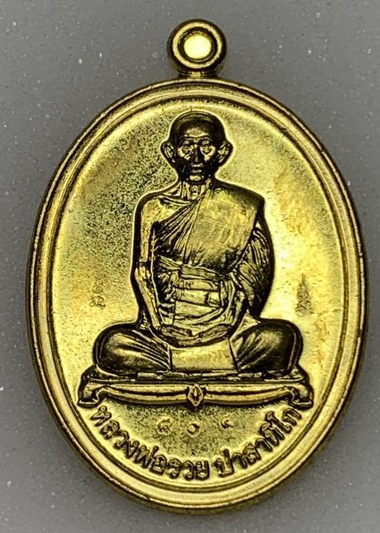 ลักษณะ: เป็นเหรียญรูปไข่ ด้านหน้าเป็นรูปเหมือนหลวงพ่อรวยนั่งเต็มองค์บนอาสนะ ด้านล่างมีตัวอักษรระบุชื่อ "หลวงพ่อรวย ปาสาทิโก"
